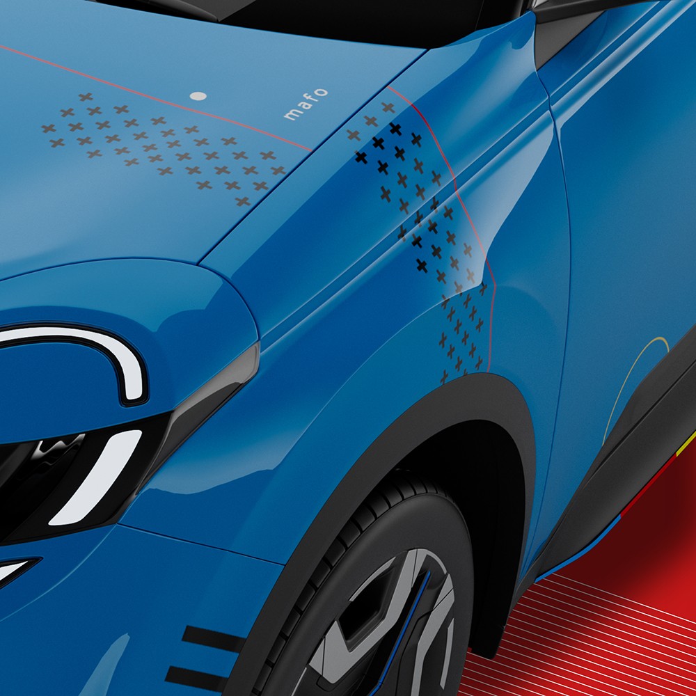 L’asymétrie, élément essentiel de mon processus créatif, s’est naturellement imposée dans ma proposition. Elle renforce le caractère unique de la nouvelle Micra, tout en exprimant ma vision d’un design singulier et vivant.