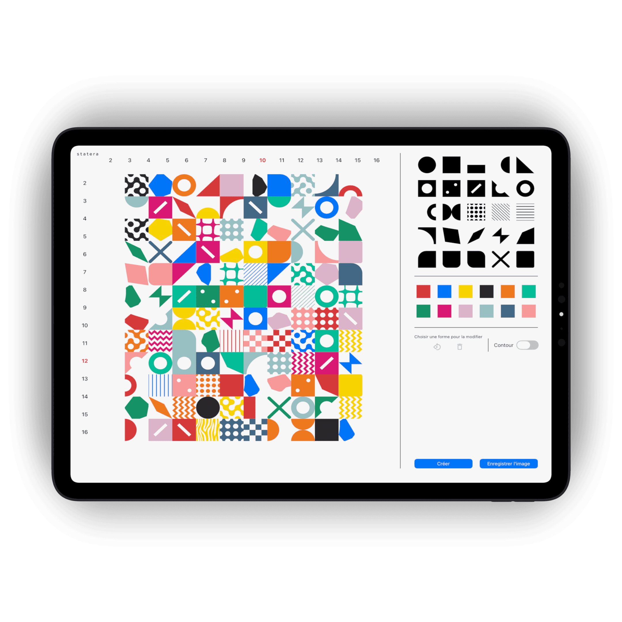 Statera is an ode to the delicate balance between grid logic and art. This project was born from the encounter between the precision of code and artistic emotion. Randomness plays an essential role: it introduces the unexpected, the creative chance that constantly renews the composition. From this synergy between rigor and spontaneity emerges a virtual space where colors and shapes come to life freely, exploring infinite possibilities.